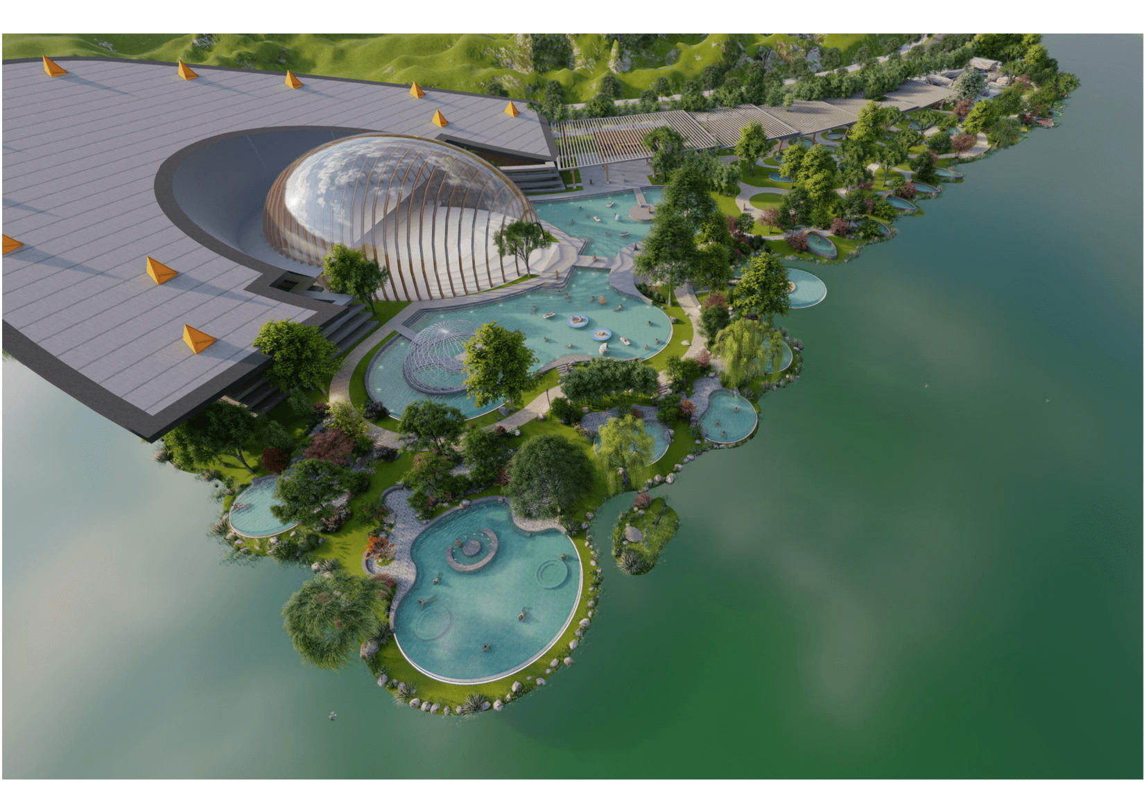建筑規模 包含各類室外泡池25個,占地20.5畝;