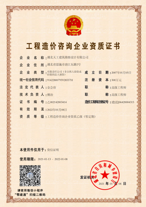 工程咨詢單位乙級(jí)資信證書