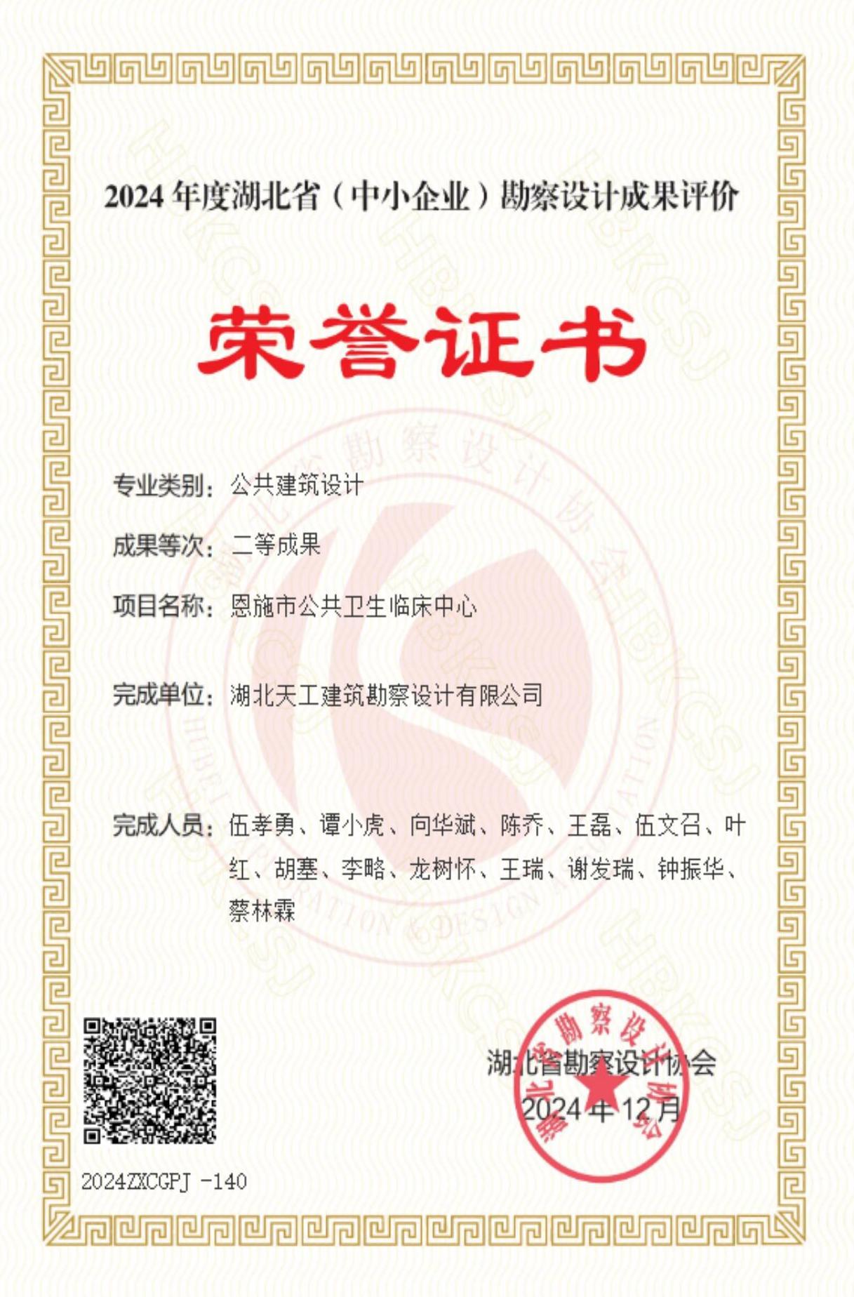 恩施市清江民族學(xué)校建設(shè)項(xiàng)目獲獎(jiǎng)證書