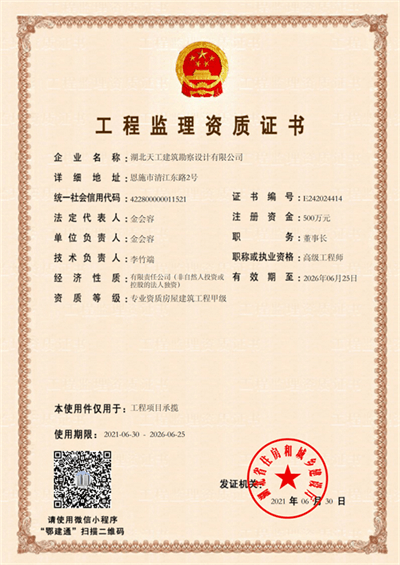 近日,從國家自然資源主管部門傳來振奮人心的喜訊:湖北天工建筑勘察設計有限公司(以下簡稱“湖北天工”)成功通過城鄉規劃編制單位甲級資質的延續核準!這不僅是對公司技術實力、人才隊伍、項目業績與管理水平的國家級權威認可,更是公司發展歷程中的重要里程碑,為湖北天工在未來城鄉規劃領域的持續深耕與市場開拓奠定了堅實的基礎。