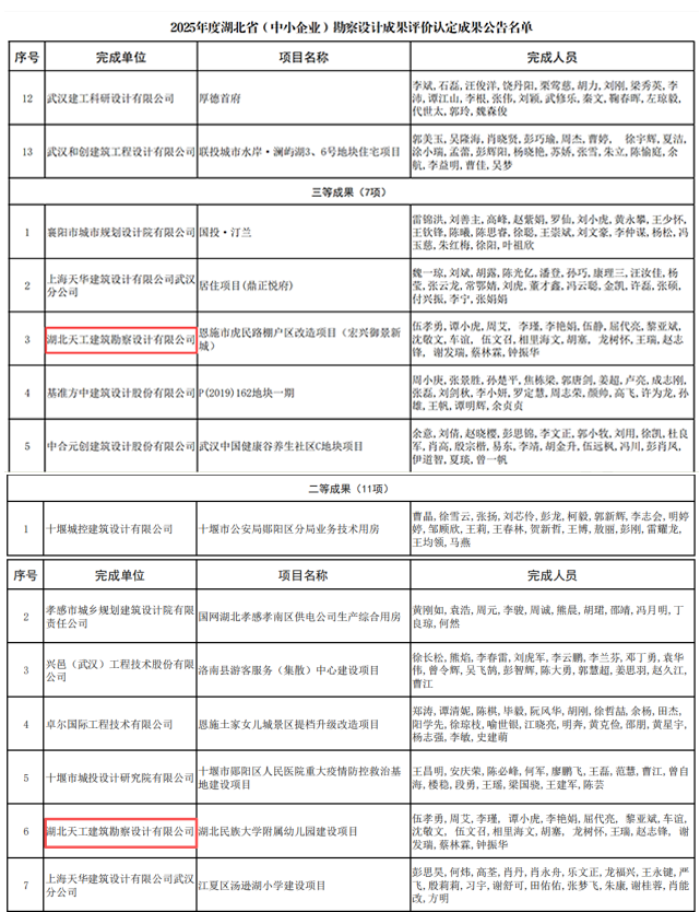 喜報│天工設計院獲2025年度湖北省(中小企業)勘察設計成果獎