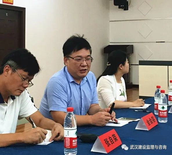 行業(yè)自治第四小組組長、中鐵武漢大橋工程咨詢監(jiān)理有限公司董事長張自榮,副會長夏明、馬真、蔡清明,秘書長陳凌云及秘書處馮梅、李國銘、陶英、嚴(yán)家運(yùn)一同參加。華德萊集團(tuán)董事長金會容,武漢江城建設(shè)咨詢有限公司總經(jīng)理黃澤光及相關(guān)負(fù)責(zé)人,湖北天工建筑勘察設(shè)計院院長車誼及相關(guān)負(fù)責(zé)人參會。