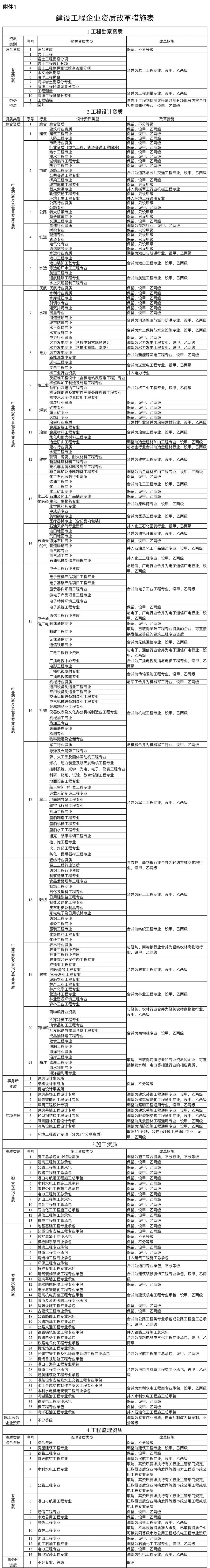 附件:1.建設工程企業資質改革措施表