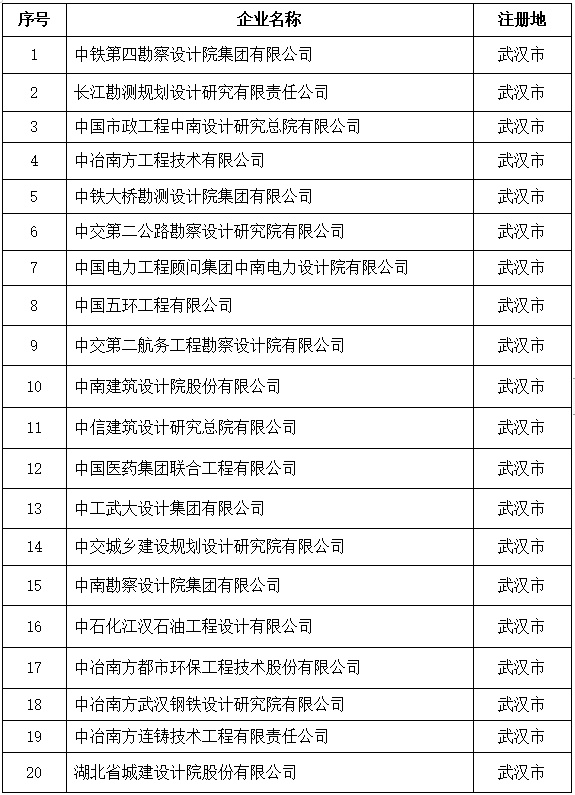 1.湖北省工程設計和施工雙資質重點培育企業名單